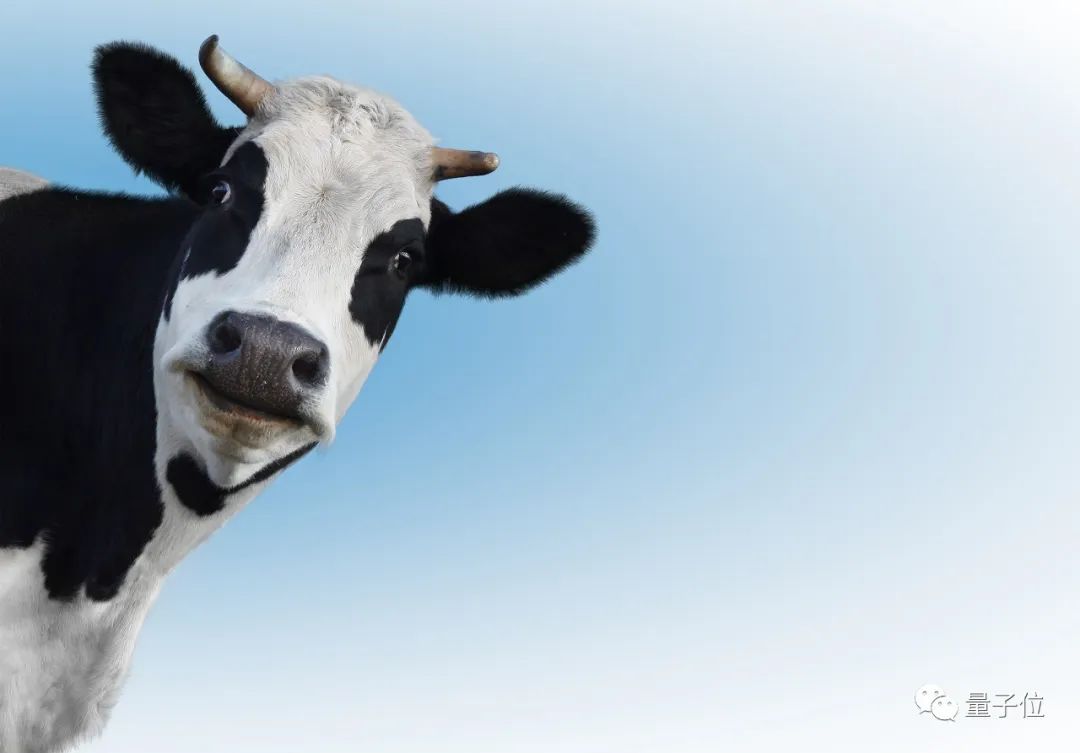 一头黑白相间的奶牛,站在蓝天下,正凝视着镜头。它似乎有些好奇或惊讶,又或许在思考着自己的存在和命运。它的耳朵竖立,眼睛炯炯有神,仿佛在寻找什么重要信息。它是一只充满生命力的动物,充满了活力与好奇心,让人不禁想要靠近观察它的世界。