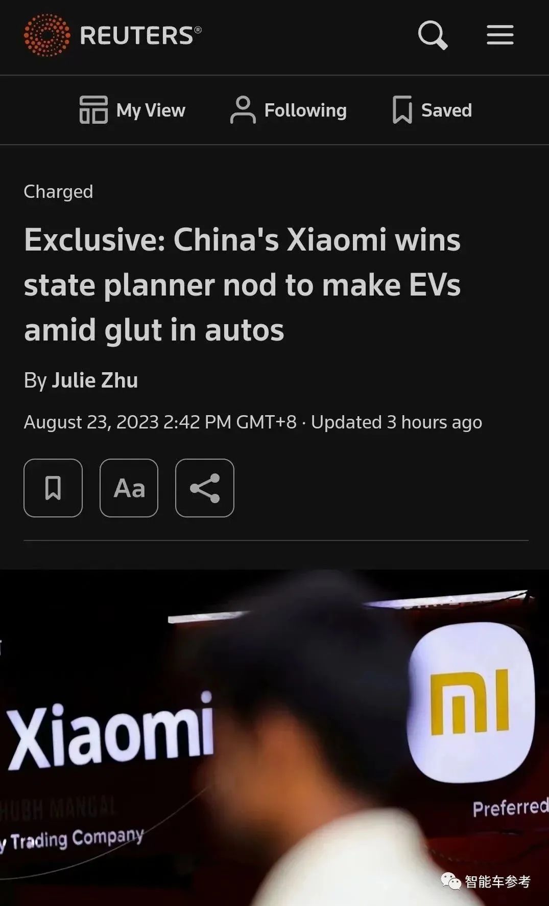 据路透社报道,小米公司已经获得国家发改委的批准,可以生产电动汽车。