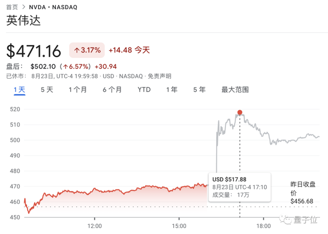 而盘后交易价格至休市时为502.1美元,峰值更是达到了517.88美元。