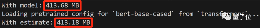 比如模型bert-base-case Int8估计占用413.18 MB内存,实际占用为413.68MB,相差0.5MB,误差仅有0.1%。