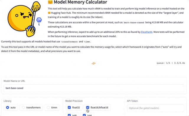 这就是HuggingFace Space上的最新火起来工具——Model Memory Calculator,模型内存测量器,在网页端人人可体验。