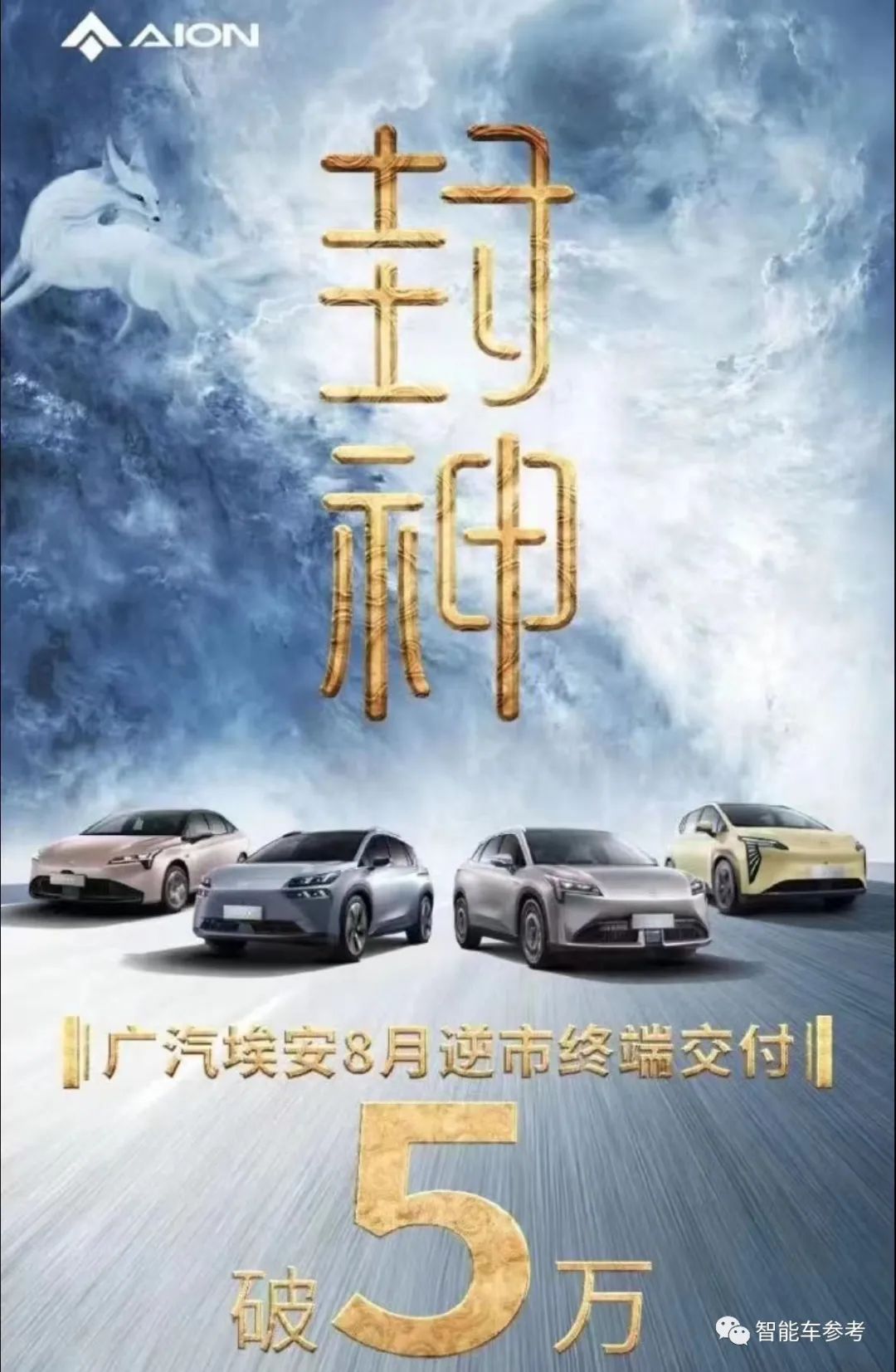 新能源转型表现最好的品牌,无疑是广汽埃安,常年位居“新势力周销量榜第0”的位置,上半年累计销量高达10万辆,8月销量更是超5.2万辆。