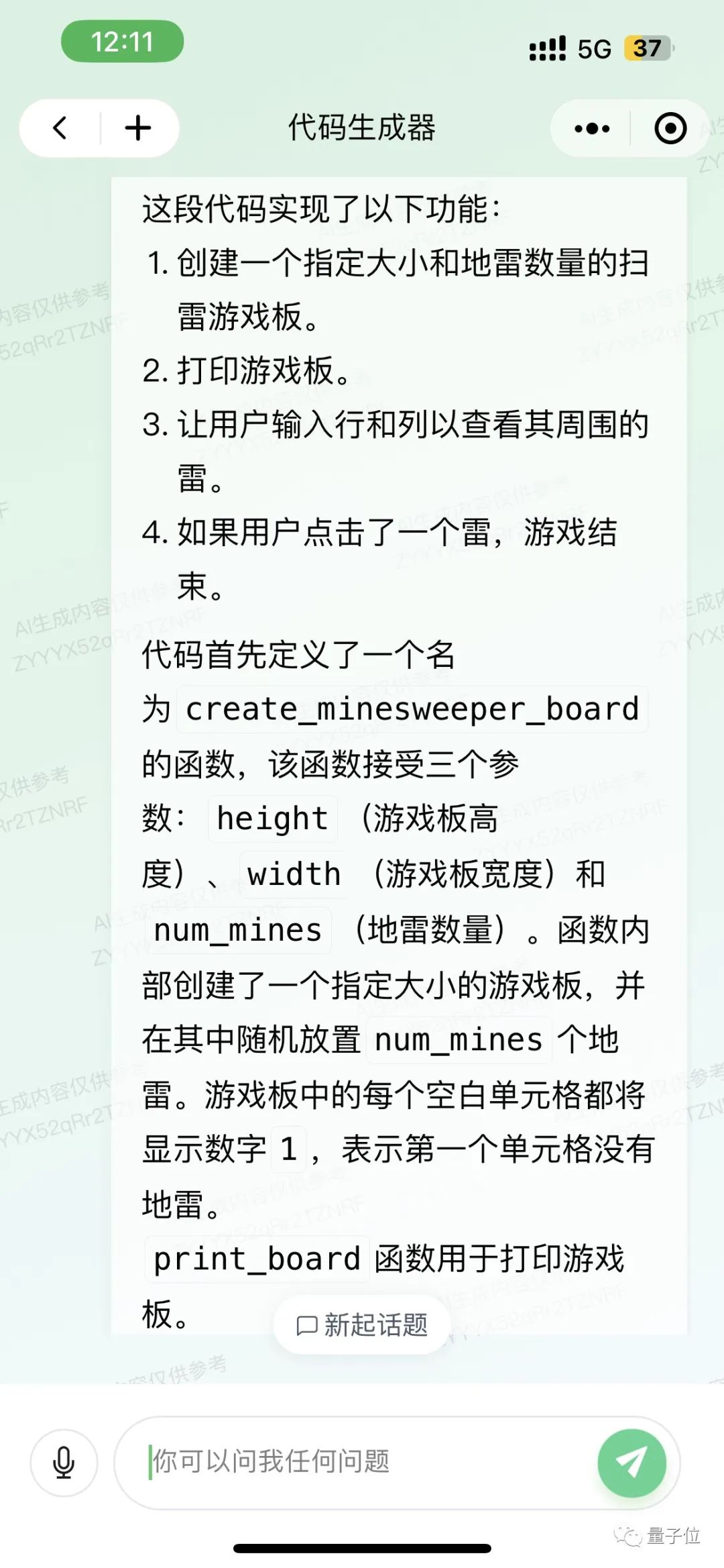 让混元助手的代码生成器生成一段扫雷代码,效果是酱婶的: