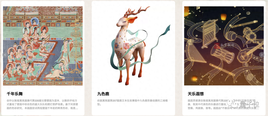 与此同时,像华为、B站等不少互联网企业,也在陆陆续续参与到敦煌文化的作品共创中,发布设计的创意数字素材: