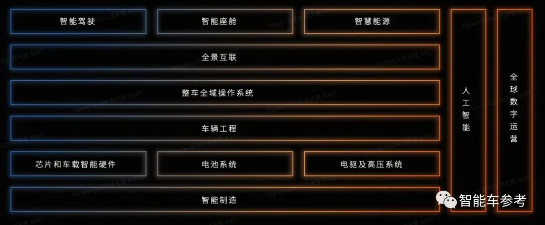 “蔚来技术全栈”包括芯片及车载智能硬件、电池系统、电驱系统、车辆工程、操作系统、移动互联、智能驾驶、智能座舱、智慧能源、智能制造、人工智能、全球数字运营等 12个技术领域。