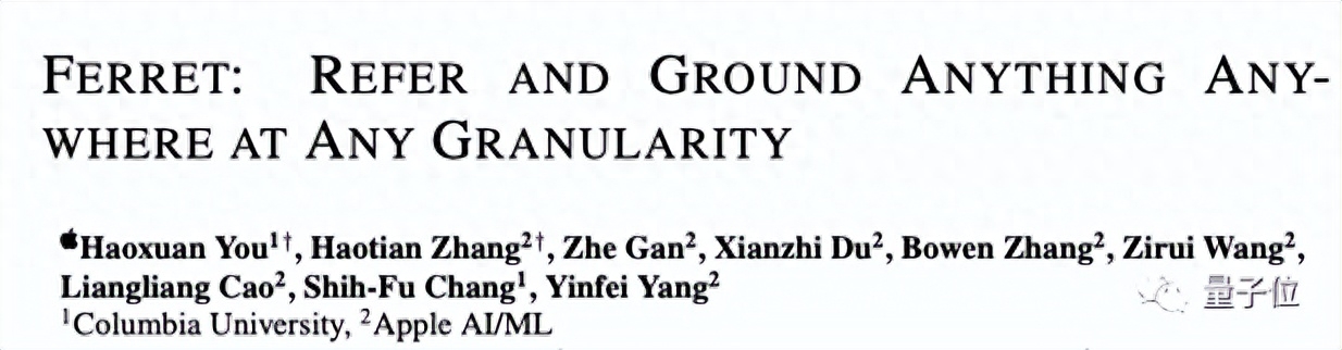 Ferret大模型由苹果AI/ML和哥伦比亚大学研究团队共同带来,全华人阵容。