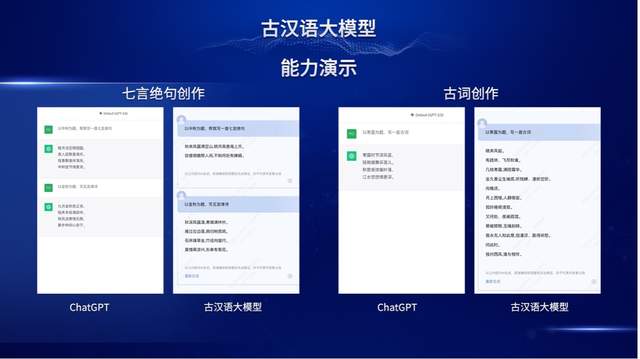现场演示了古汉语大模型的古文生成、古文翻译、诗歌检索、历史问答等操作。