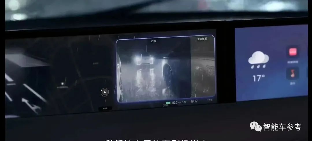 还有雨夜模式,左右后视镜和A柱的盲区将由高清摄像头还原在中控屏。