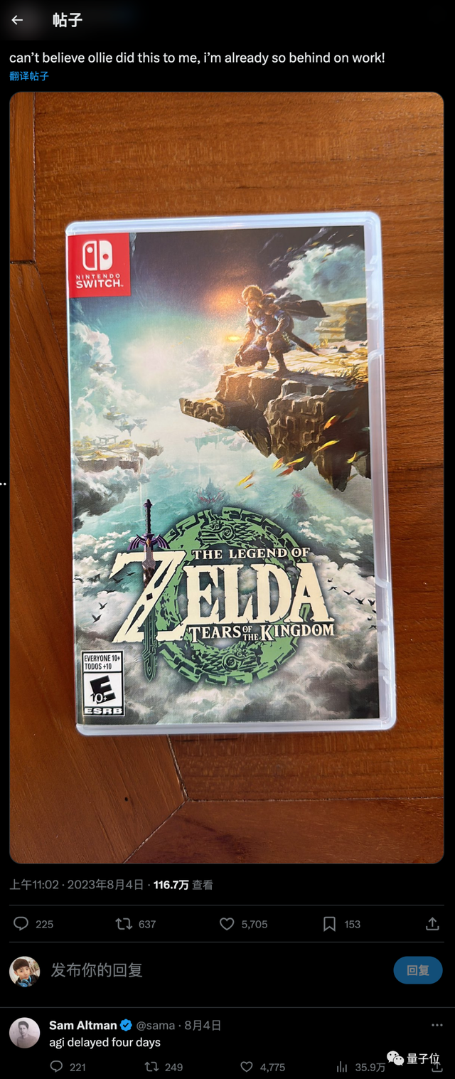 就连收到同事送的《塞尔达传说》游戏,在表示这款游戏害得他落下许多工作之后,也不忘提一句AGI:
