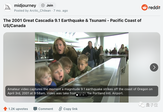 比如reddit上就有一张AI伪造的“2001年卡斯卡迪亚9.1级地震及海啸”的“现场”,超过1.2k网友点赞。
