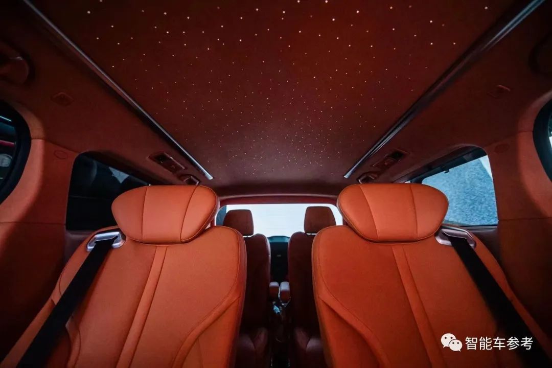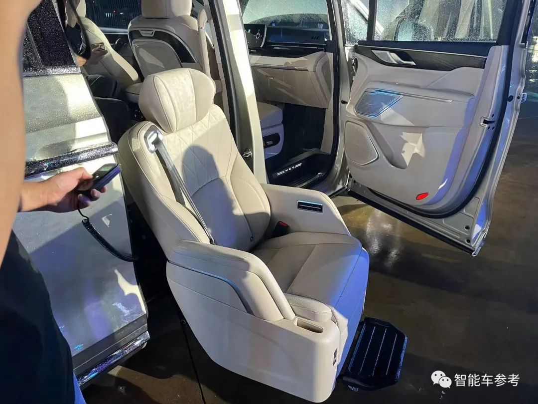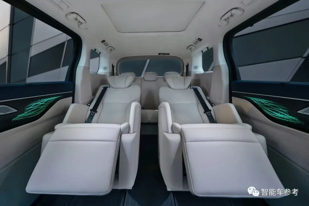 轴距3275mm,车长超5.4米,六座NAPPA皮革包裹均支持电动调节,配备加热通风。