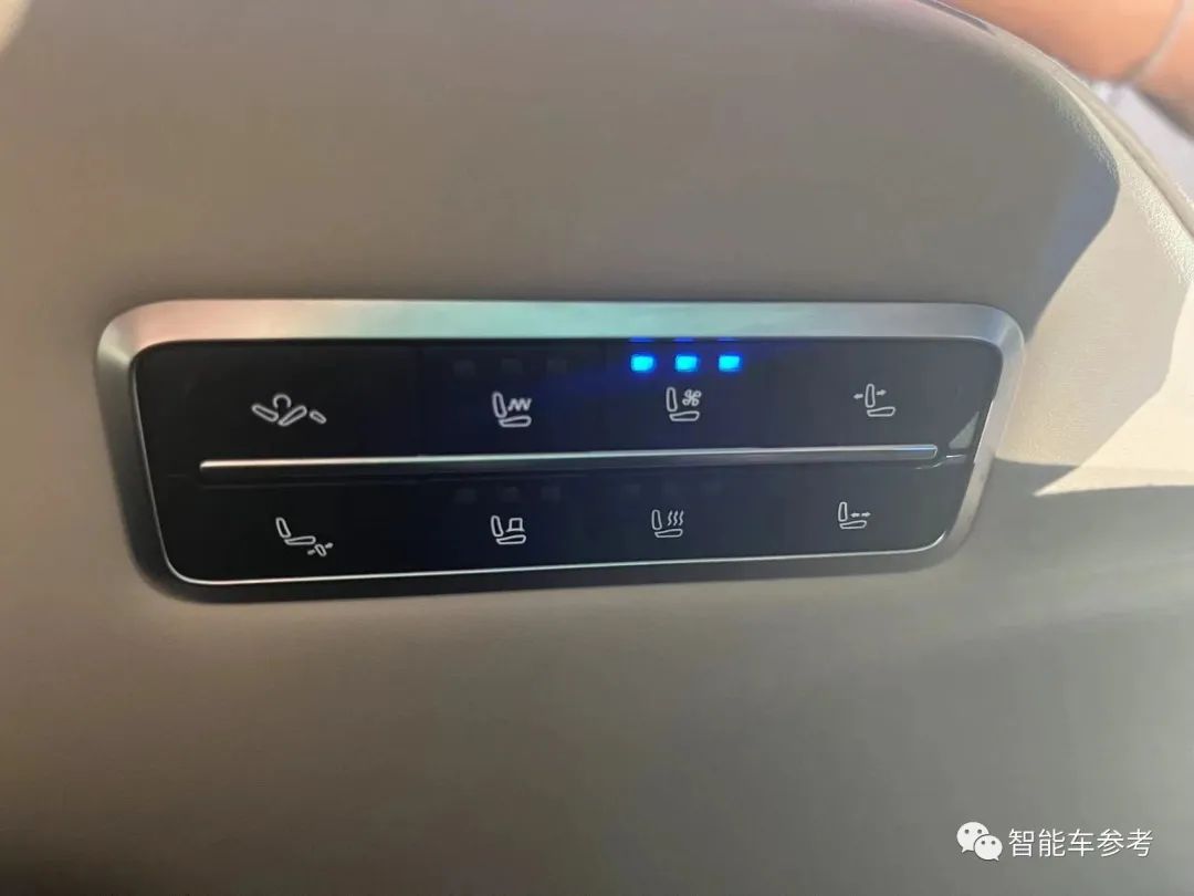 △“福祉版”座椅控制器二排零重力座椅的八个按键还支持一键躺平,调节座椅靠背和腿托,开启座椅通风,加热,按摩。