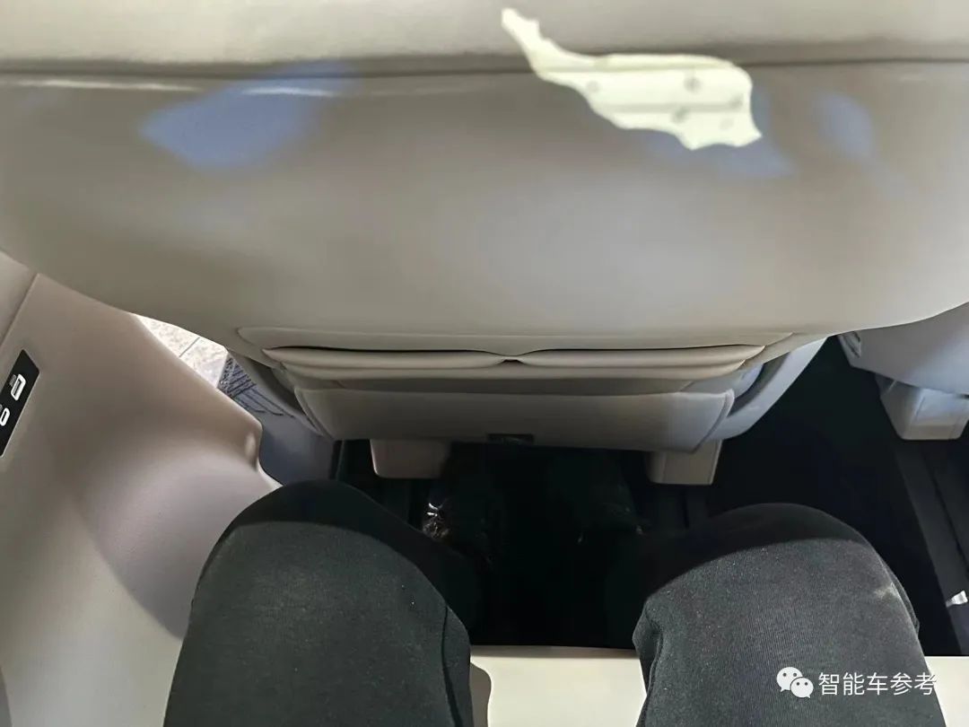 二排如果调的太靠后,牺牲太多三排腿部空间,如下图所示,坐下后感知上比飞机经济舱的空间还要小一点,跷二郎腿比较困难。