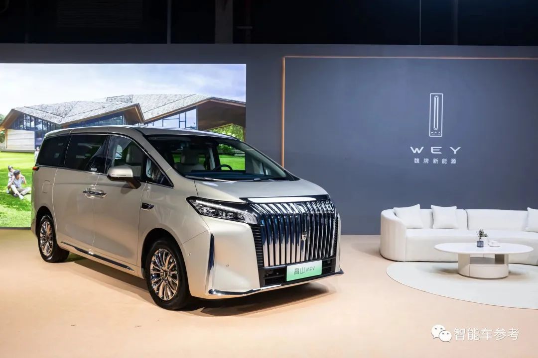 魏牌高山DHT-PHEV,全系四驱MPV,3085mm轴距,超5米车长,价格区间为33.58-40.58万元,纯电续航140km,百公里馈电油耗7.2L。