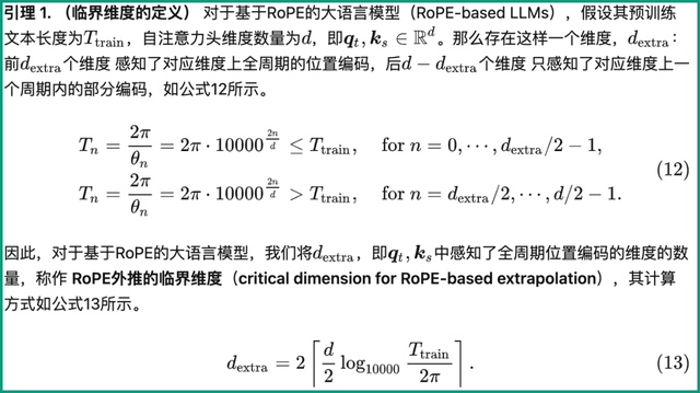 从定义中来看,它和预训练文本长度Ttrain、自注意力头维度数量d等参数都有关系,具体计算方法如下: