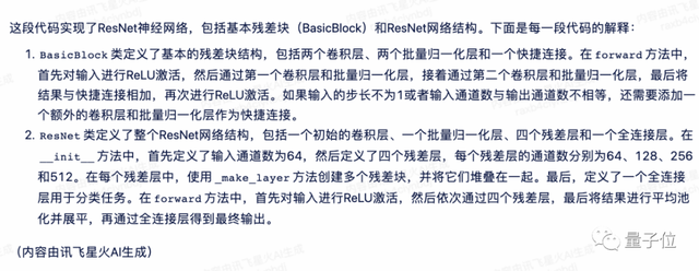 讯飞星火的回答直接分成了代码部分和解读部分。