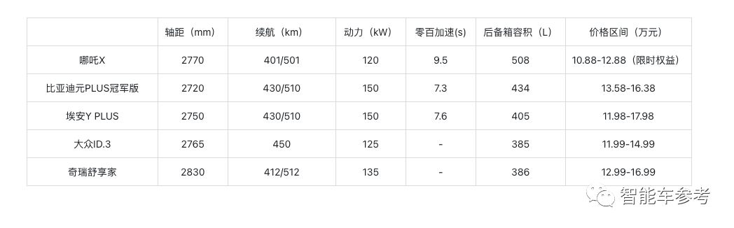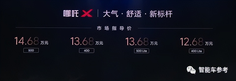 哪吒U升级改款车型,哪吒X,价格区间12.68-14.68万元,轴距2770mm,车长超4.6米,有401km和501km两个续航版本。