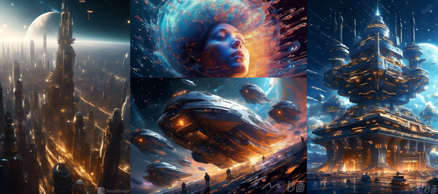我们再加大难度,添加一些天马行空,但同样颇具艺术气息风格的提示词: