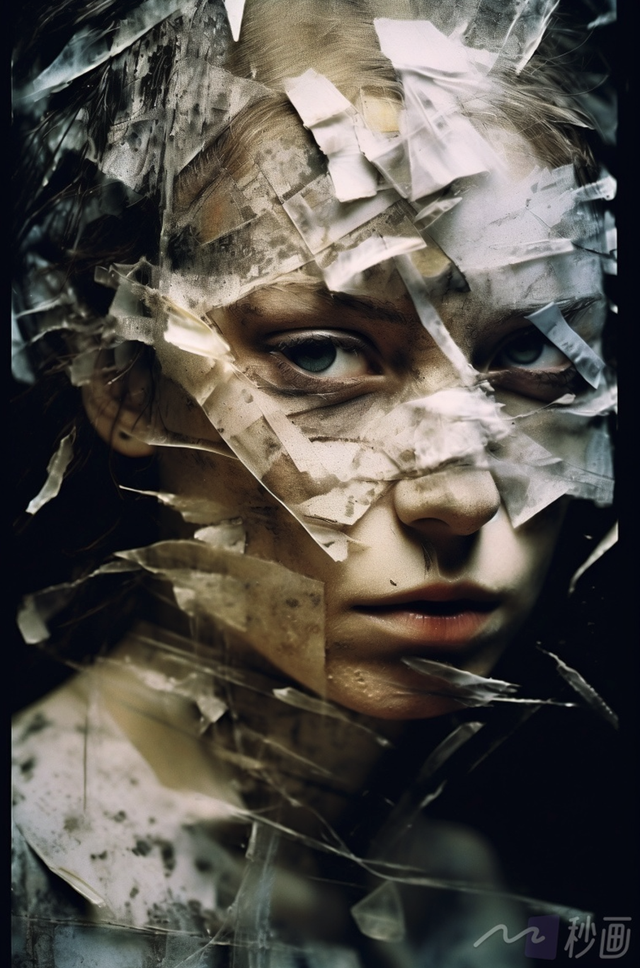 实验电影技术,前卫电影肖像,被底片遮蔽,多层页面,低角度,胶片图像,融化,划痕,刺穿,撕裂,抽象。