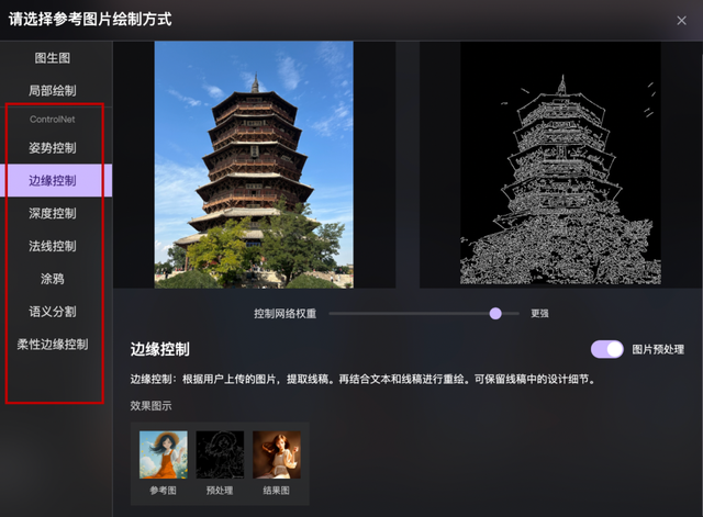 在图生图界面,新版本的秒画还将ControlNet这一宝藏工具进行了整合,用户无需跳转,直接在“图生图”功能下即可使用,进阶创作更快捷。