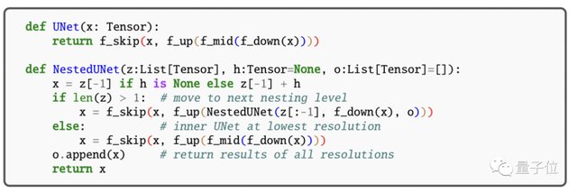 然后就是利用这些不同分辨率的数据进行联合UNet建模,小UNet处理低分辨率,并嵌套进处理高分辨率的大UNet。
