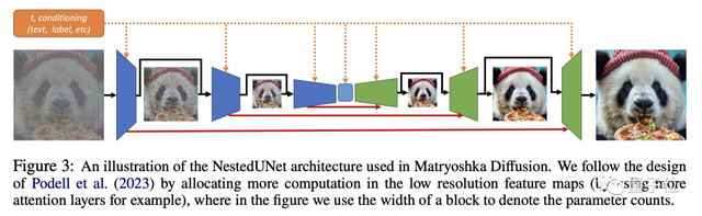 通过跨分辨率的连接,不同大小的UNet之间可以共用特征和参数。