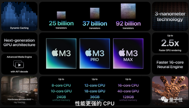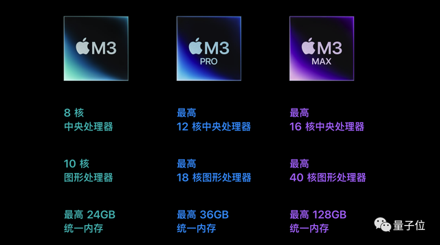 具体的M3系列芯片GPU、CPU技术,以及这三个芯片的配置,我们接着看。