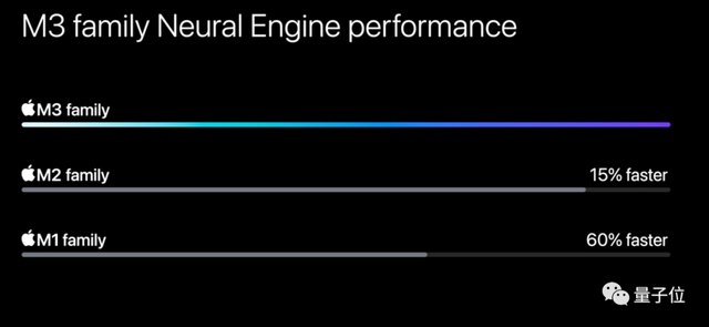 除了CPU和GPU以外,两大引擎也有所更新。其中,M3神经网络引擎性能相比M2提速15%,相比M1提速60%。
