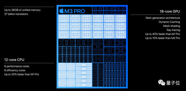 - 大杯(M3 Pro):12核CPU、18核GPU,分别比M1 Pro快出了10%和40%。