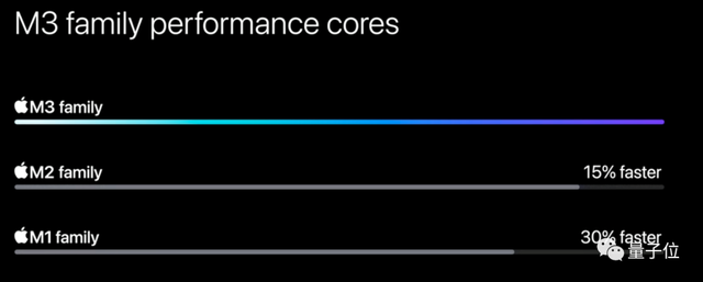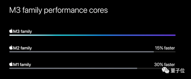 性能核速度,最高比M1系列提升30%,比M2提升15%: