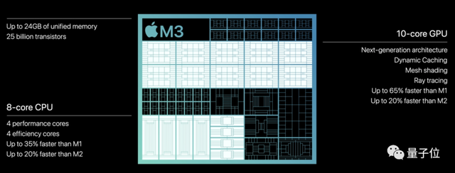 - 中杯(M3):8核CPU、10核GPU,比M2均快出了20%。