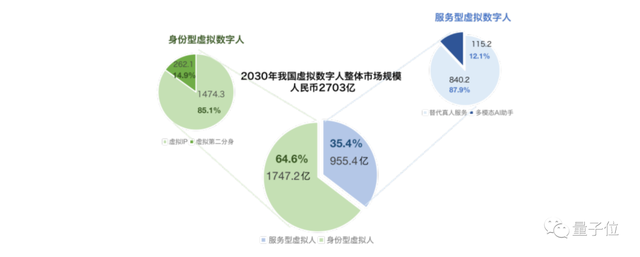 在2030年,我国虚拟数字人整体市场规模将达到2700亿。身份型虚拟数字人约1750亿。服务型虚拟数字人总规模超过950亿。