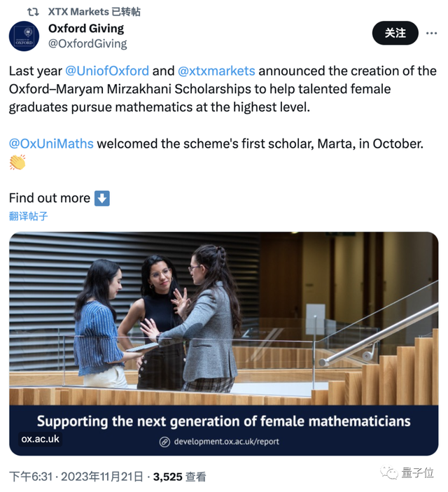 它还在去年和牛津大学一起设立了一个专门鼓励女学生研究数学的奖学金。