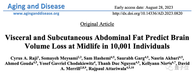 为了探究腹部脂肪(内脏脂肪和皮下脂肪)与大脑结构变化的关系,来自美国华盛顿大学的研究人员对10001名健康参与者进行了全身核磁共振检查(MRI)。