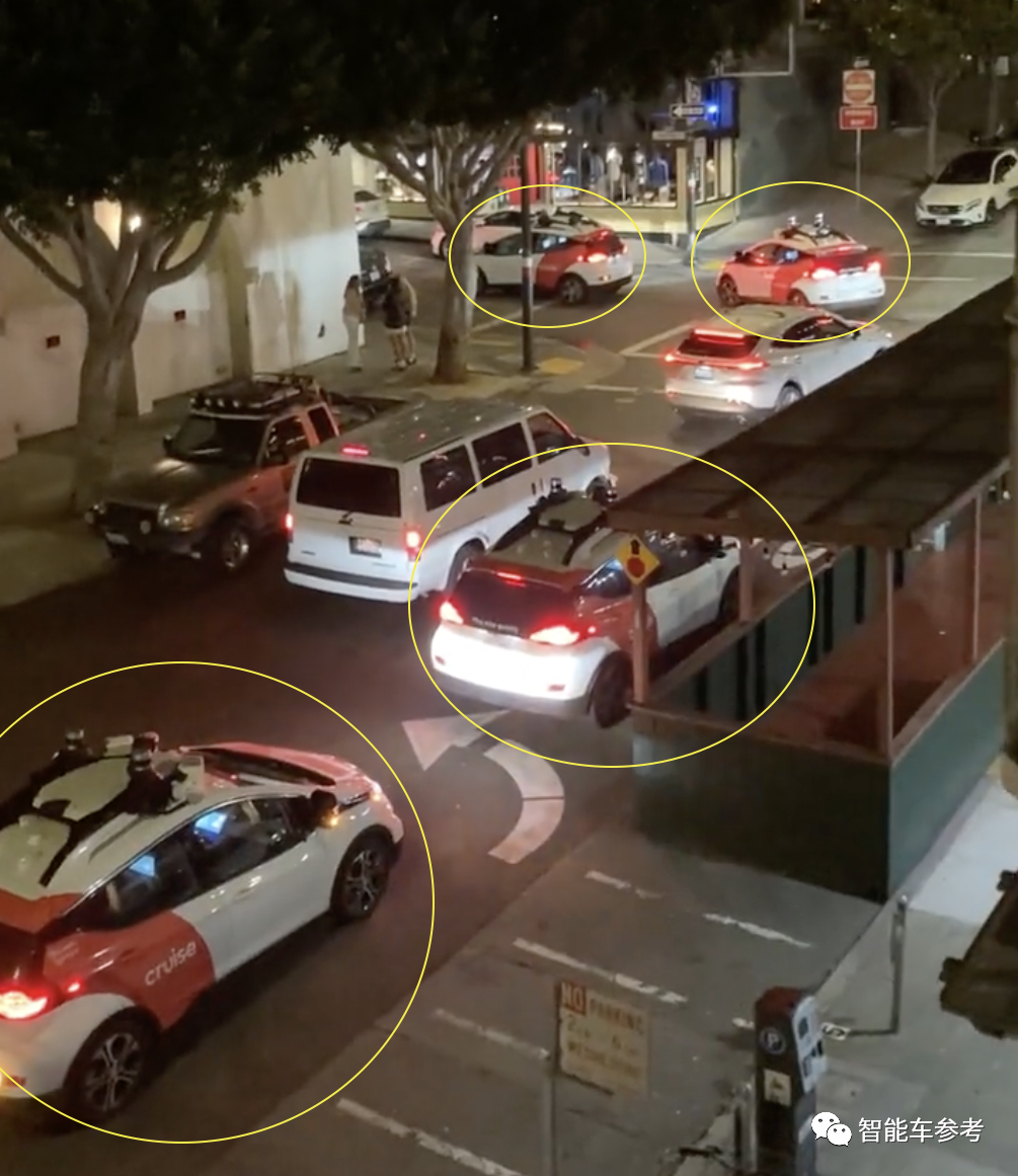 大晚上的10辆无人车突然集体熄火,造成交通堵塞。堵了近半个小时,Cruise员工才赶到现场手动挪车。