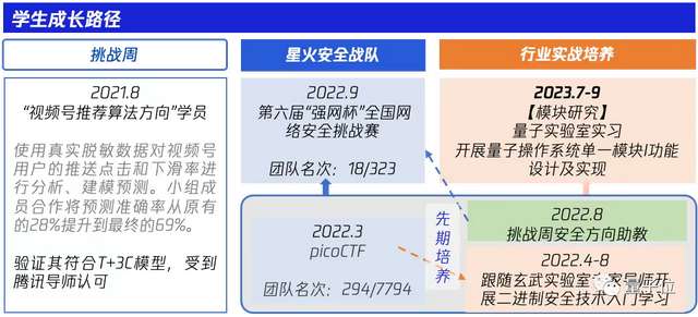 先是2021年挑战周视频号推荐算法成员,再是2022年安全攻防方向的助教,参与了安全攻防方向的长期培养。