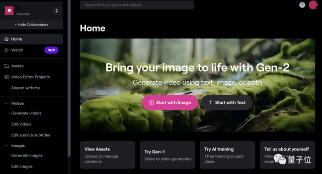 首先,进入Runwayml主页,点击粉色的“Start with image”按钮: