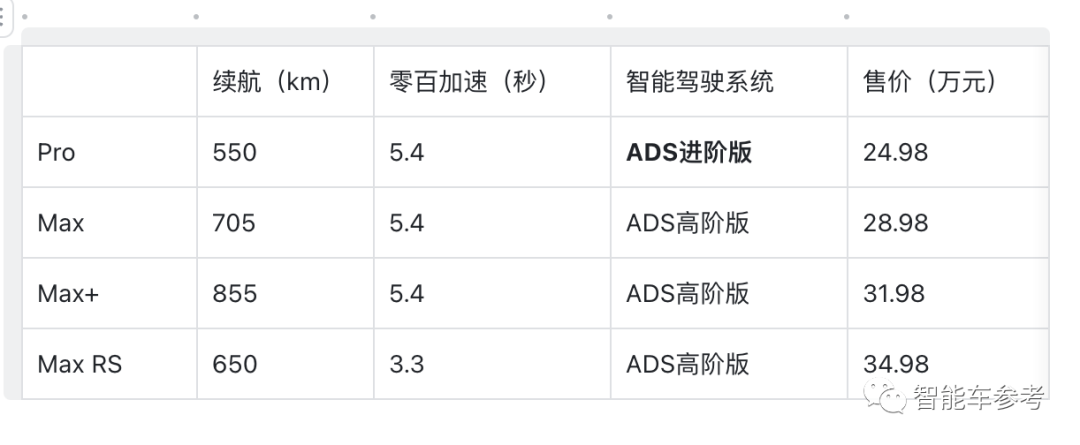 只有两款车型,26.14万元的入门版,续航606km,百公里加速6.1秒。