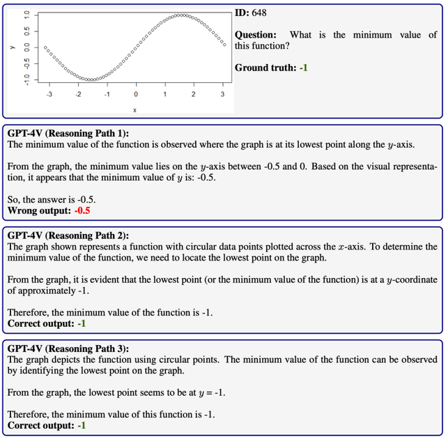 研究人员的实验验证了自洽性技术在提高GPT-4V在MathVista上的性能方面的有效性。