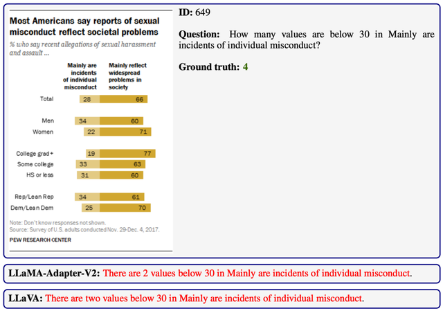 其次是Bard模型,准确率为34.8%,而目前最好的开源模型LLaVA的准确率则为26.1%。