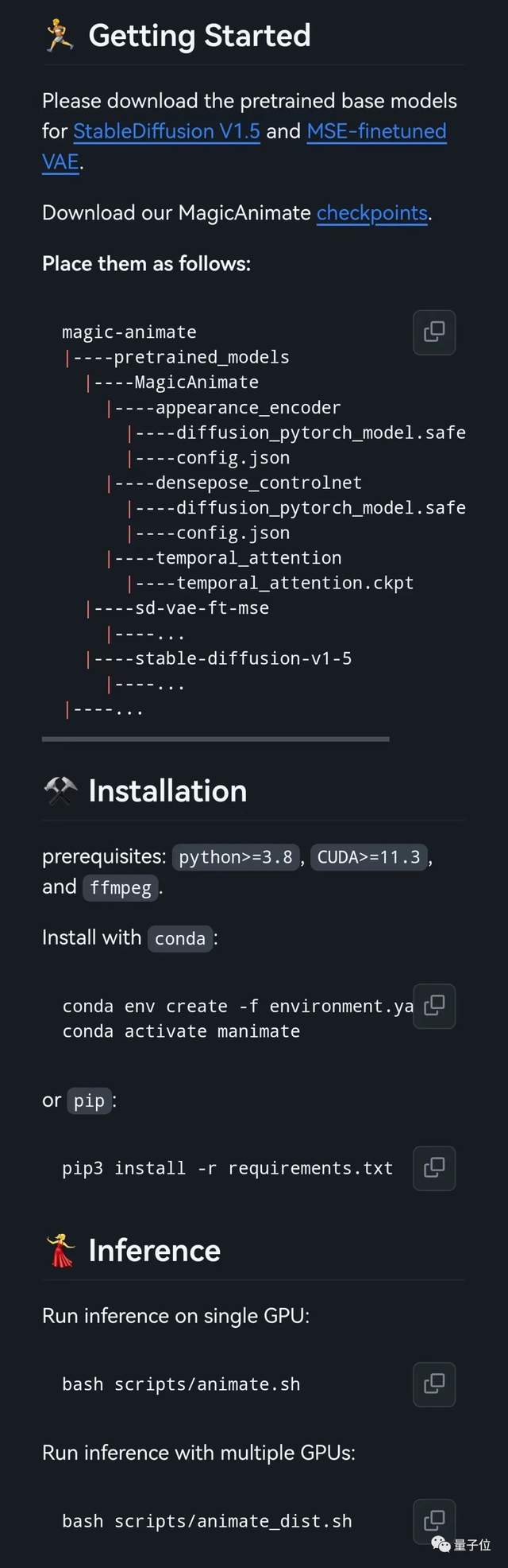 除此之外,MagicAnimate在GitHub中也给出了本地体验的方式,感兴趣的小伙伴可以试试哦~