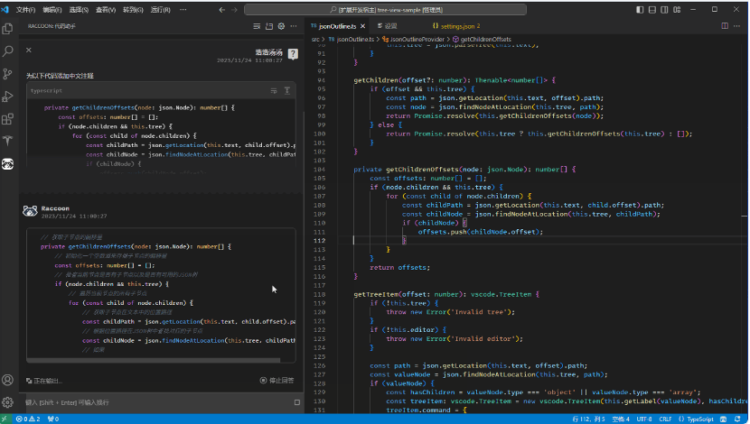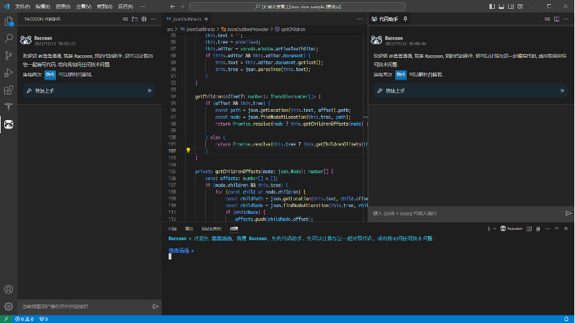 1)侧边栏内代码助手 (GUI):点击 VS Code 侧边栏的 Raccoon 图标激活;