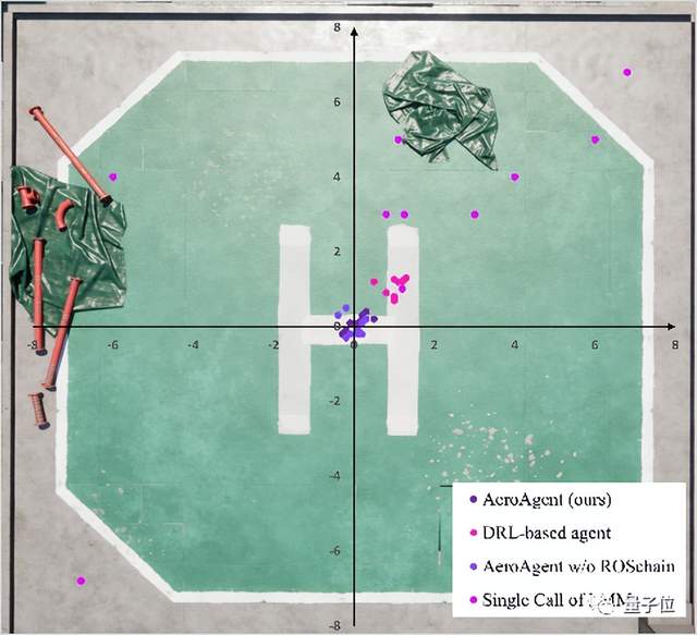 而单纯调用LLM或基于DRL的智能体都只获得了29.4分,平均每步0.2,不足AeroAgent的十分之一。
