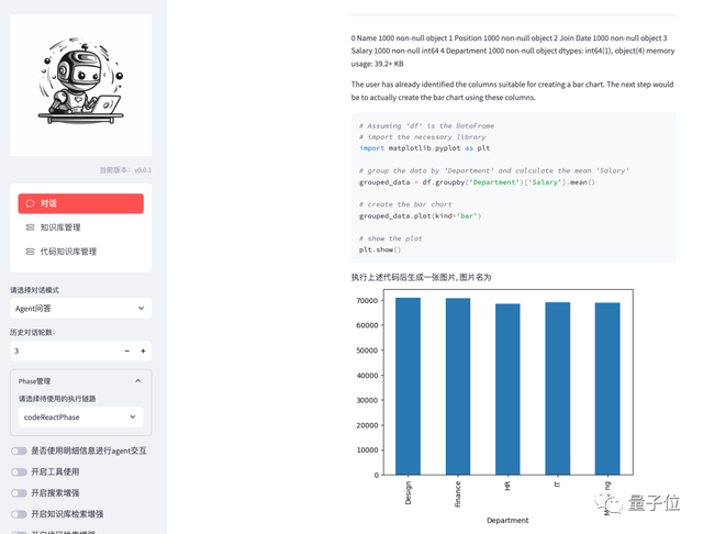 此外,研发团队还封装了一些Agent场景,诸如chatPhase、docChatPhase、searchChatPhase、codeChatPhase等,可支撑知识库问答、代码问答、工具调用、代码执行等功能。