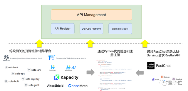 研究团队期望和周边开源的DevOps平台打通兼容,通过API的注册、管理和执行能够实现对话式交互驱动完成各种特定任务(数据查询、容器操作等)。