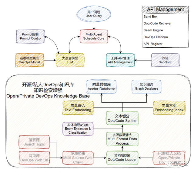 - 通过完善链路级的Multi-Agent调度设计、协同知识库、代码库、工具库、沙盒环境,来让大模型可以实现DevOps领域复杂多步骤的任务;