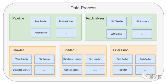 - ️ Data Process:数据处理模块,提供文档加载器、数据清洗、文本切分的功能,处理和整合多源格式的数据文档