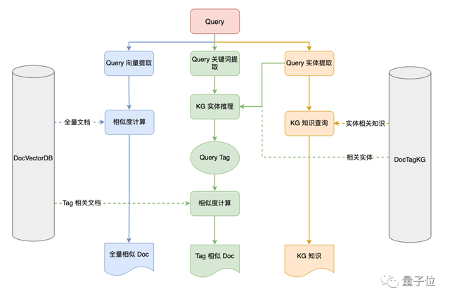 于是研究团队选择知识库外挂的手段和检索增强生成的方式,将与问题相关的数据从知识库中检索出来,作为额外知识输入到大模型中,保障结果的可靠性&实时性,同时避免训练开销。