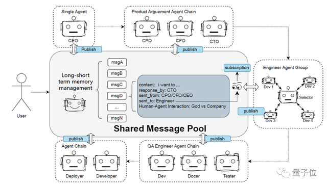 本项目的多智能体框架汲取兼容了多个框架的优秀设计,比如metaGPT中的消息池(message pool)、autogen中的代理选择器(agent selector)等。
