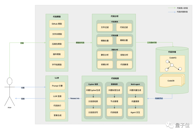 针对如上问题,团队通过程序分析获取代码的逻辑结构并存入知识图谱,然后通过RAG迭代查询增强获取必要的上下文信息,又结合多智能体角色扮演,实现了大模型和代码库的有机结合。